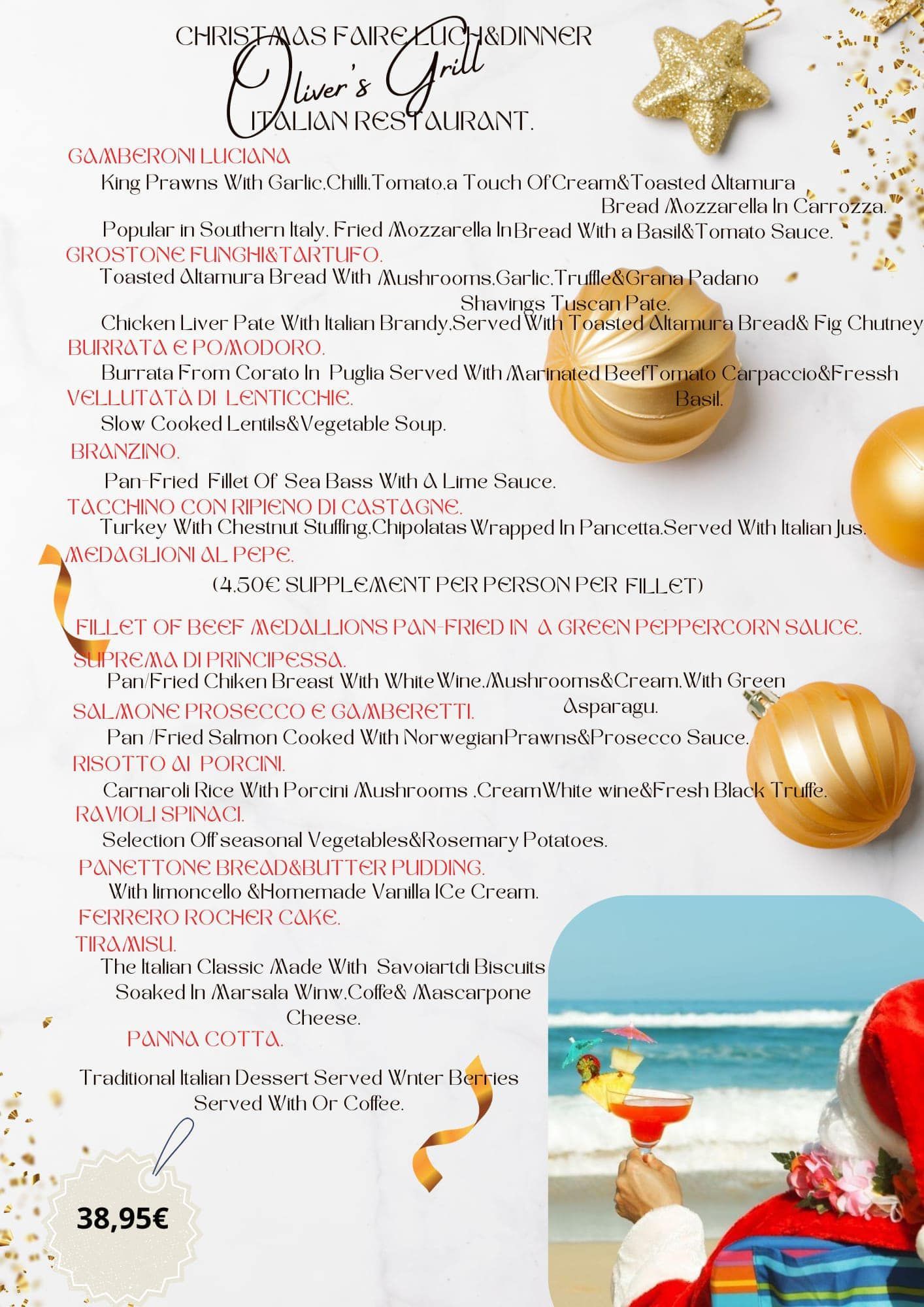 Ven a Italian Oliver´s Grill del 1 al 31 de diciembre y disfruta de nuestro delicioso menú de Navidad con tu familia, amigos o empresa.